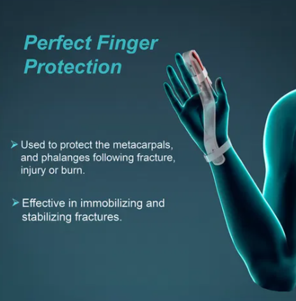 تم تصميم جبيرة امتداد الأصابع F 03 للتثبيت على الأصابع وحمايته من إصابة المشط أو الكسور أو بعد الجراحة أثناء التعافي. توفير مدمج للشريط خفيف الوزن ولكن قوي وسهل الاستخدام أو الإزالة جيد التهوية مصنوع من جسم الألومنيوم المطلي المرن، ويمكن ثنيه وتخصيصه حسب احتياجات المريض. خفيفة الوزن للغاية ولكنها قوية جدًا. توفر تثبيتاً صارماً. تصميم مريح على شكل حرف U يضمن الحماية الكاملة عند الإصابات والحروق. يمكن تخصيصها لتوفير استقرار ثابت. سهل الارتداء أثناء الإصابة. جيدة التهوية ومريحة. توفر بطانة ايث فوم الاسفنجية توسيداً عالياً لتعزيز الراحة، وهي غير مسببة للحساسية وعديمة الرائحة وسهلة التنظيف والعناية. توفر مثبتات الحلقة الخطافية المدمجة تركيبًا وثيقًا وقبضة ممتازة. سهلة الارتداء والخلع. حزام المعصم يحسن من قبضة اليد ويوفر ثبات لمشط اليد المصاب.