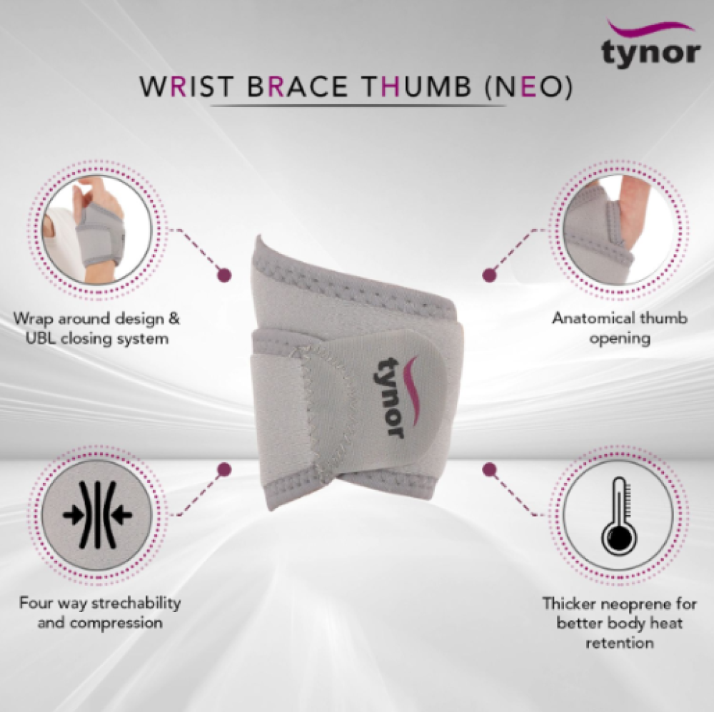 يدعم ويحمي وشل حركة المعصم مع السماح بالحركة الحرة والطبيعية للإبهام والأصابع. وهو يضغط المنطقة ويحافظ على حرارة الجسم لتخفيف الألم والالتهابات المحلية. يحافظ على الإبهام في وضع الاختطاف المحايد.