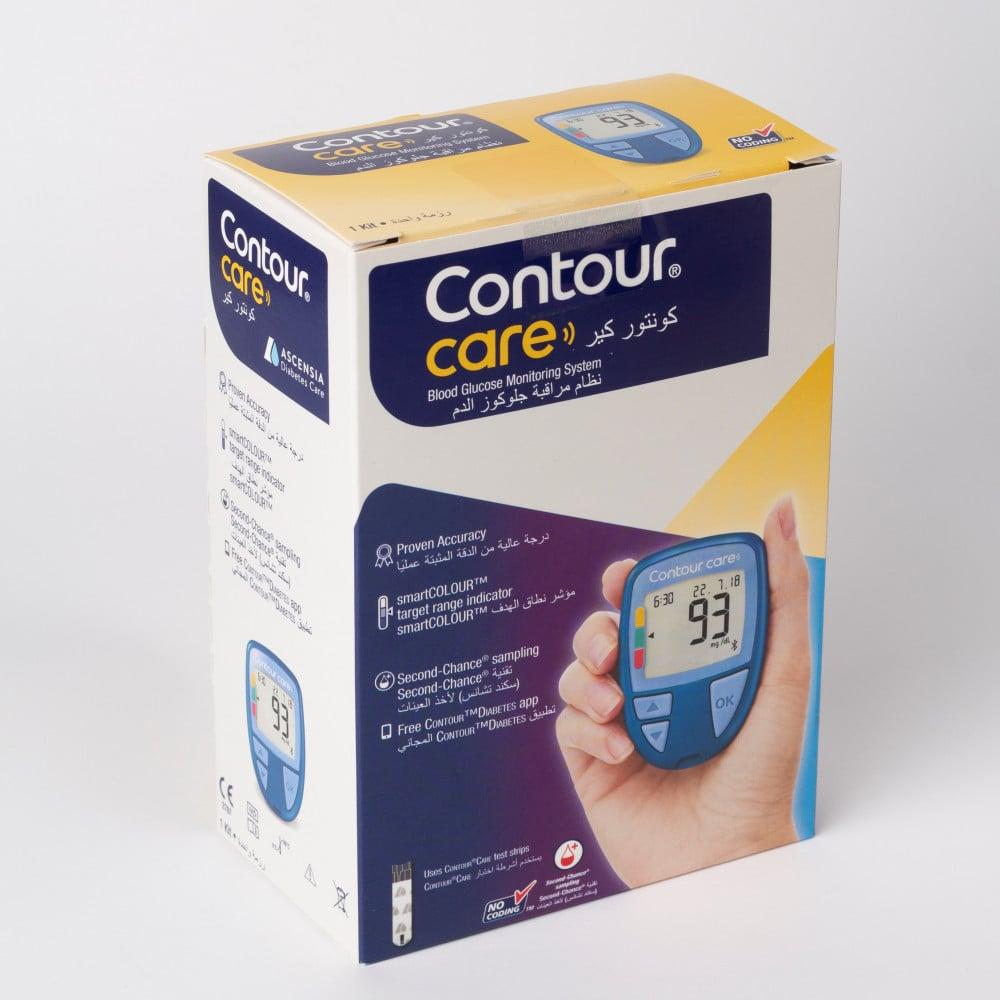 - إنه سهل تم تصميم جهاز القياس المتصل الجديد وأشرطة الاختبار الجديدة ونظام مراقبة جلوكوز الدم CONTOUR®CARE.