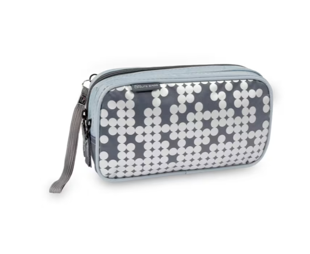 حقيبة أدوات النظافة الحرارية لمرضى السكر. مصممة لحمل جميع الأدوات الأساسية لعلاج مرض السكر. هيكلها المكون من حقيبتين يجعل من السهل تخزين وتحديد موقع أدوات القياس (جهاز قياس السكر، شرائط الاختبار، الإبر) بالإضافة إلى أقلام الأنسولين، والتي سيتم وضعها في الحقيبة الحرارية.