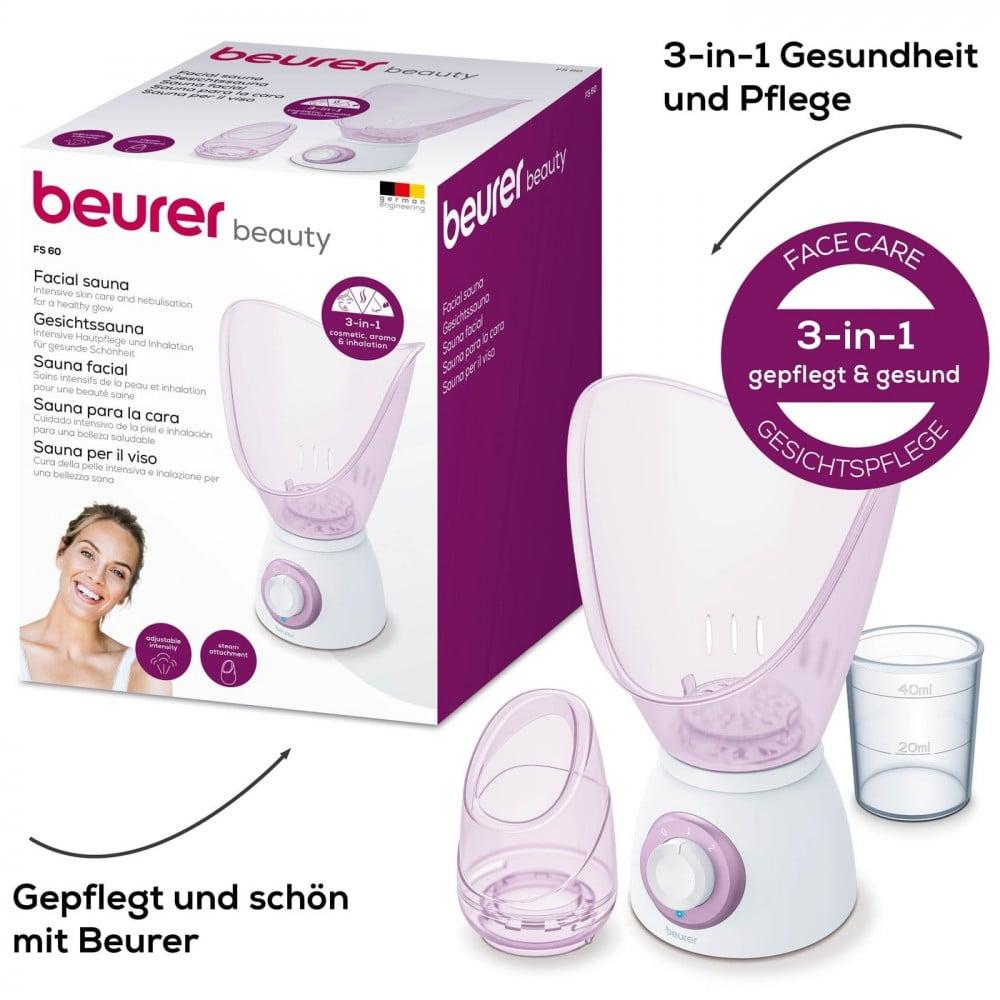 بيورير جهاز حمام بخار للوجه fs60:تنظيف بسيط. للعناية بالبشرة والاستنشاق .ملحقات للرعاية التجميلية بالوجه.